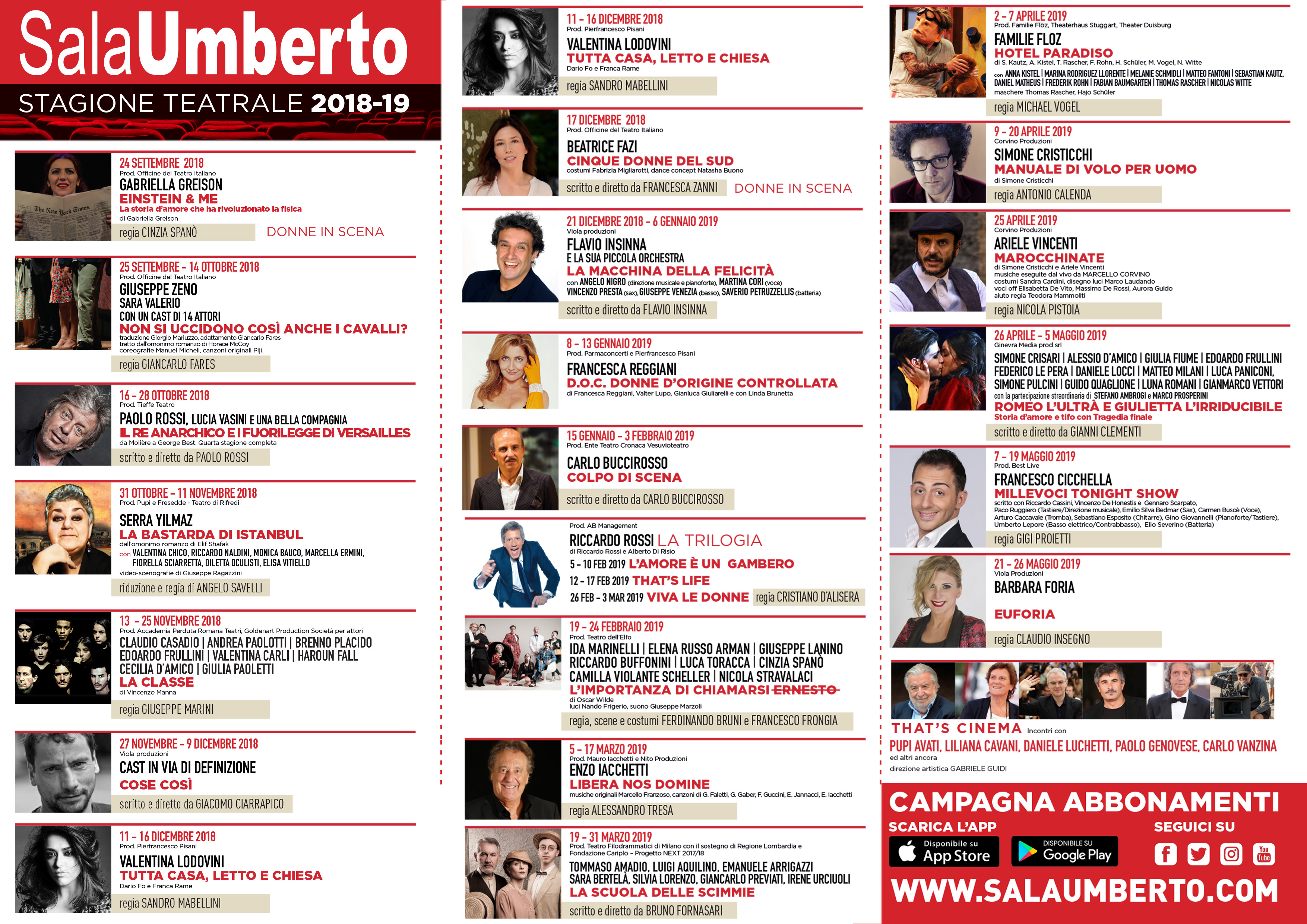 Il Teatro Sala Umberto offre la possibilità al solo possessore della tessera di iscrizione al Cral Giustizia Minorile di acquistare abbonamenti e biglietti per gli spettacoli usufruendo della scontistica di seguito riportata.